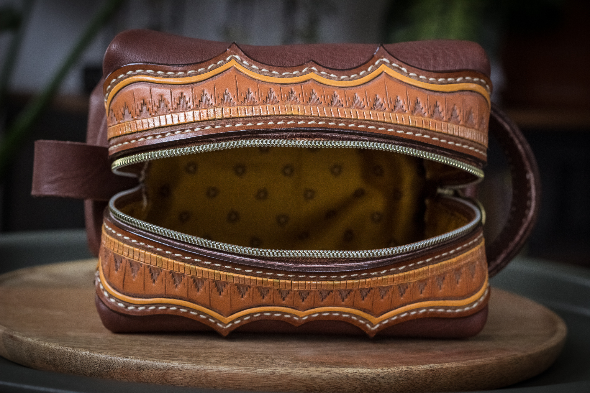 Eine wunderschönes Dopp Kit, auch bekannt als Kulturtasche.